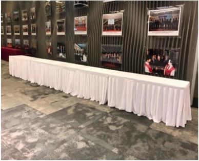 Long table with white skirting: 180L x 60W x 75cm H
