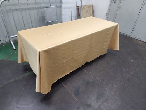 Banquet long table with gold cover: 180L x 75D X 75cm H Fit for 6 pax luncheon or dining